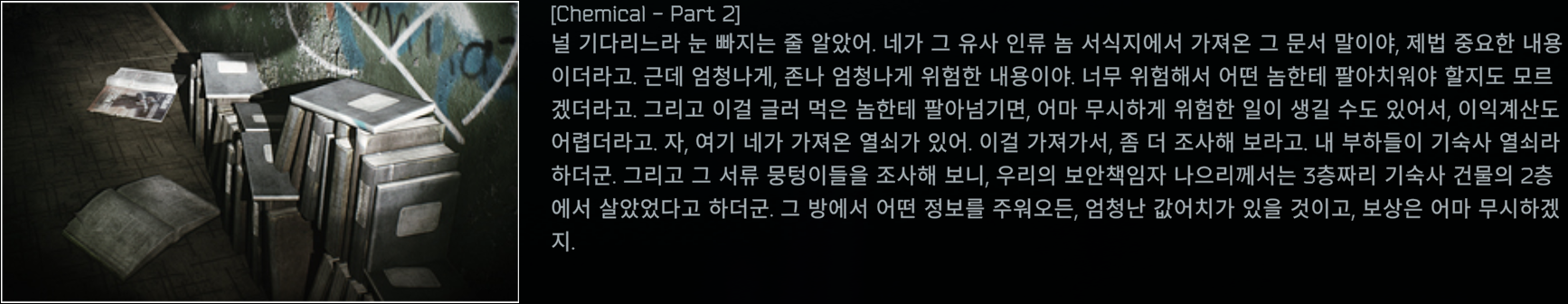 | [타르코프] 화학 (Chemical) - 파트4 // 보상 비교 // 세관(Custom) (0) | 2025.09.22 |
