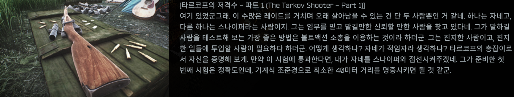 타르코프의 저격수 - 파트2와 병행해서 진행할 수 있다.