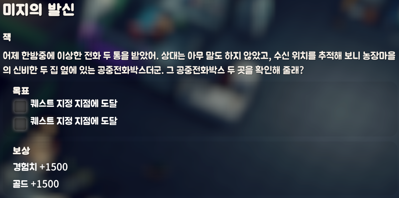 농장마을 마크방 근처에 있는 전화부스로 가면 목표가 완료된다.