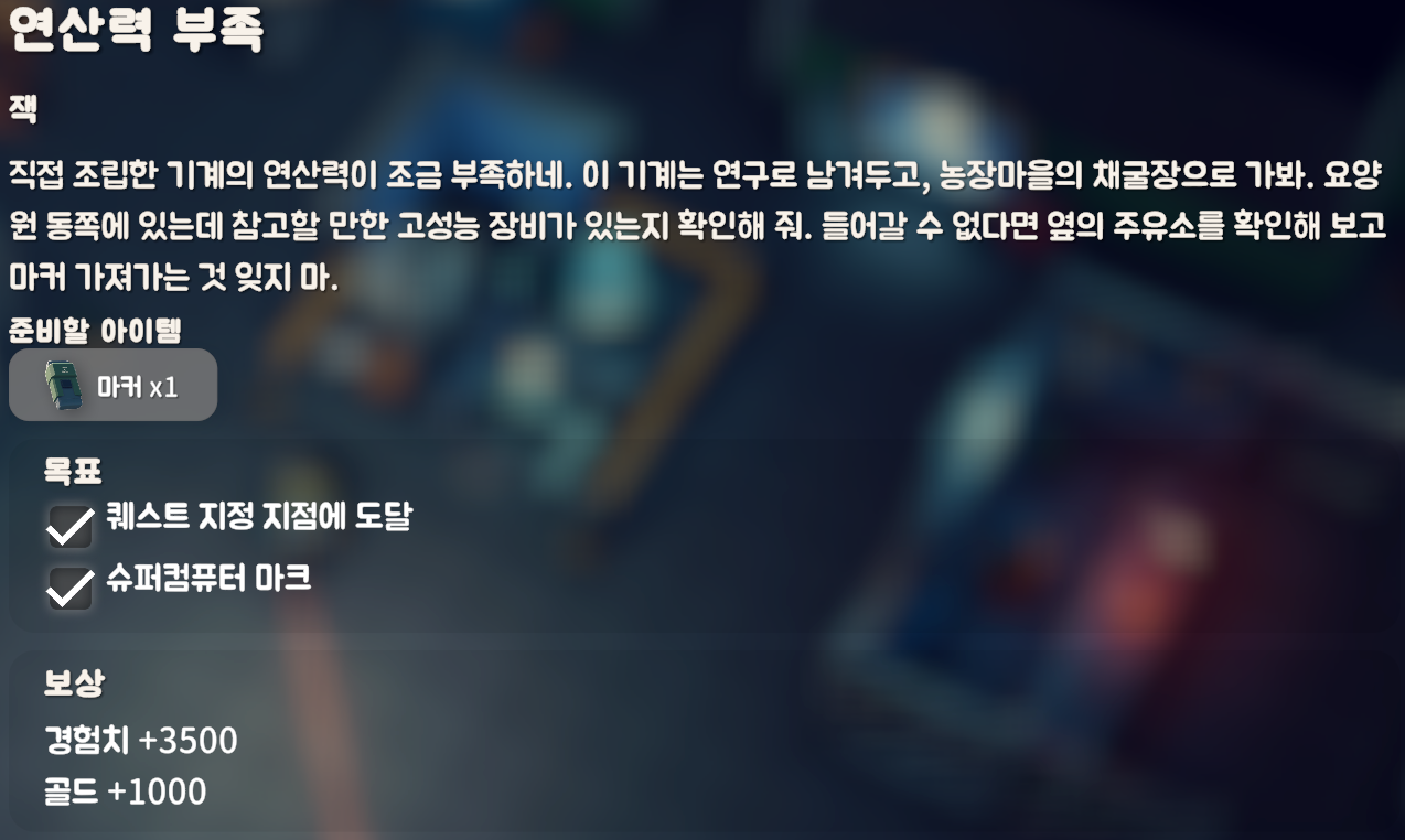 농장마을의 숨겨진 채굴장에 마커를 설치하면 되는 퀘스트다.