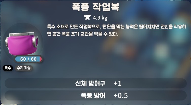 [폭풍 작업복]은 방어력이 너무 낮아, 적을 만나면 순식간에 사라질 수 있다.
