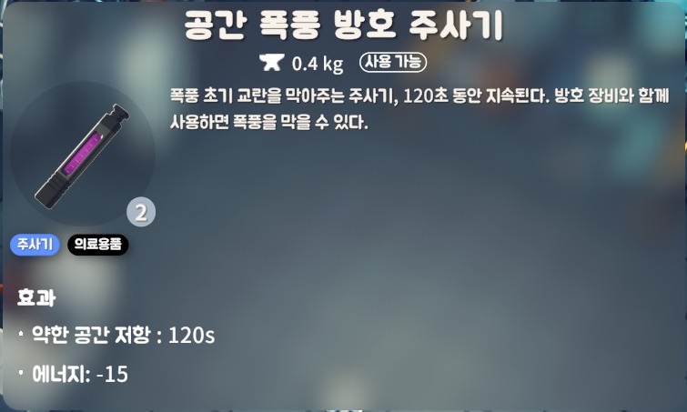 물론 [폭풍 작업복]을 착용하고 [공간 폭풍 방호 주사기]를 같이 사용한다면 2단계에서도 생존이 가능하지만